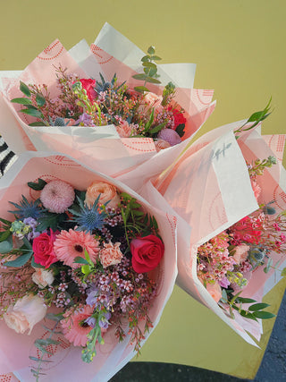 Fresh flower bouquets, designed with seasonal blooms straight from the market and wrapped in our signature Mud packaging.